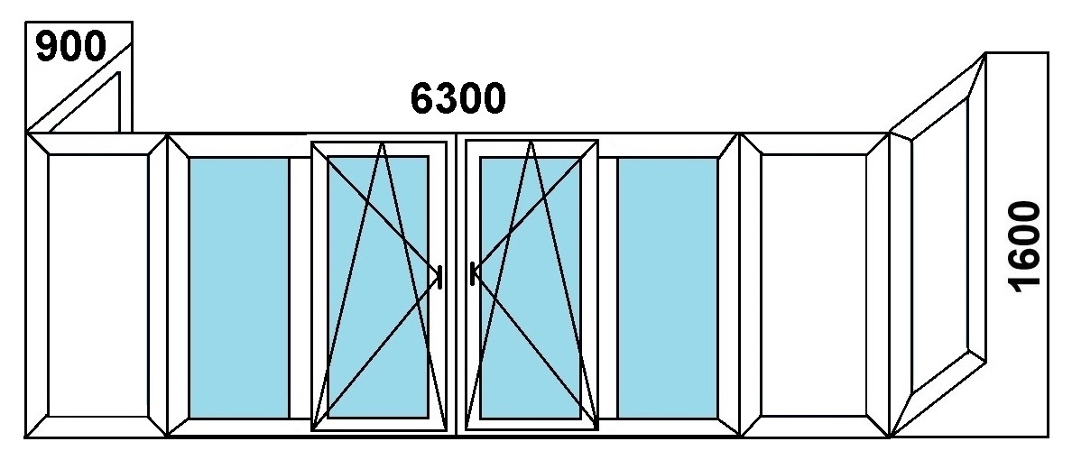 Остекление балкона стандарт - 6300(фасад) - 1600(высота) - 900(бока)
