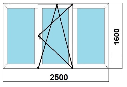 Остекление лоджии стандарт - 2500(фасад) - 1600(высота)