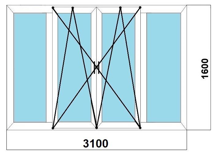 Остекление лоджии стандарт - 3100(фасад) - 1600(высота)