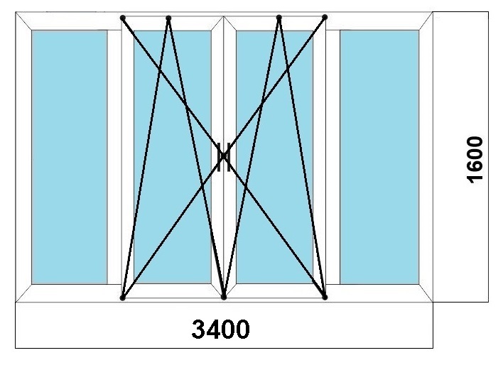 Остекление лоджии стандарт - 3400(фасад) - 1600(высота)