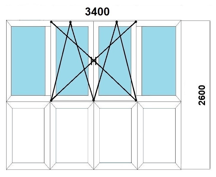Тип остекления - Французская лоджия 3400(фасад) - 2600(высота)