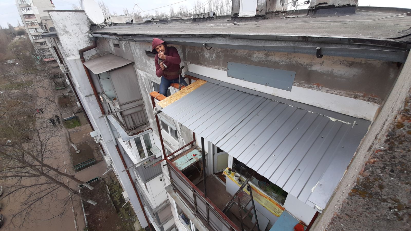 Ремонт крыши балкона. Гидроизоляция от затеканий козырька балкона. Гарантия качества.