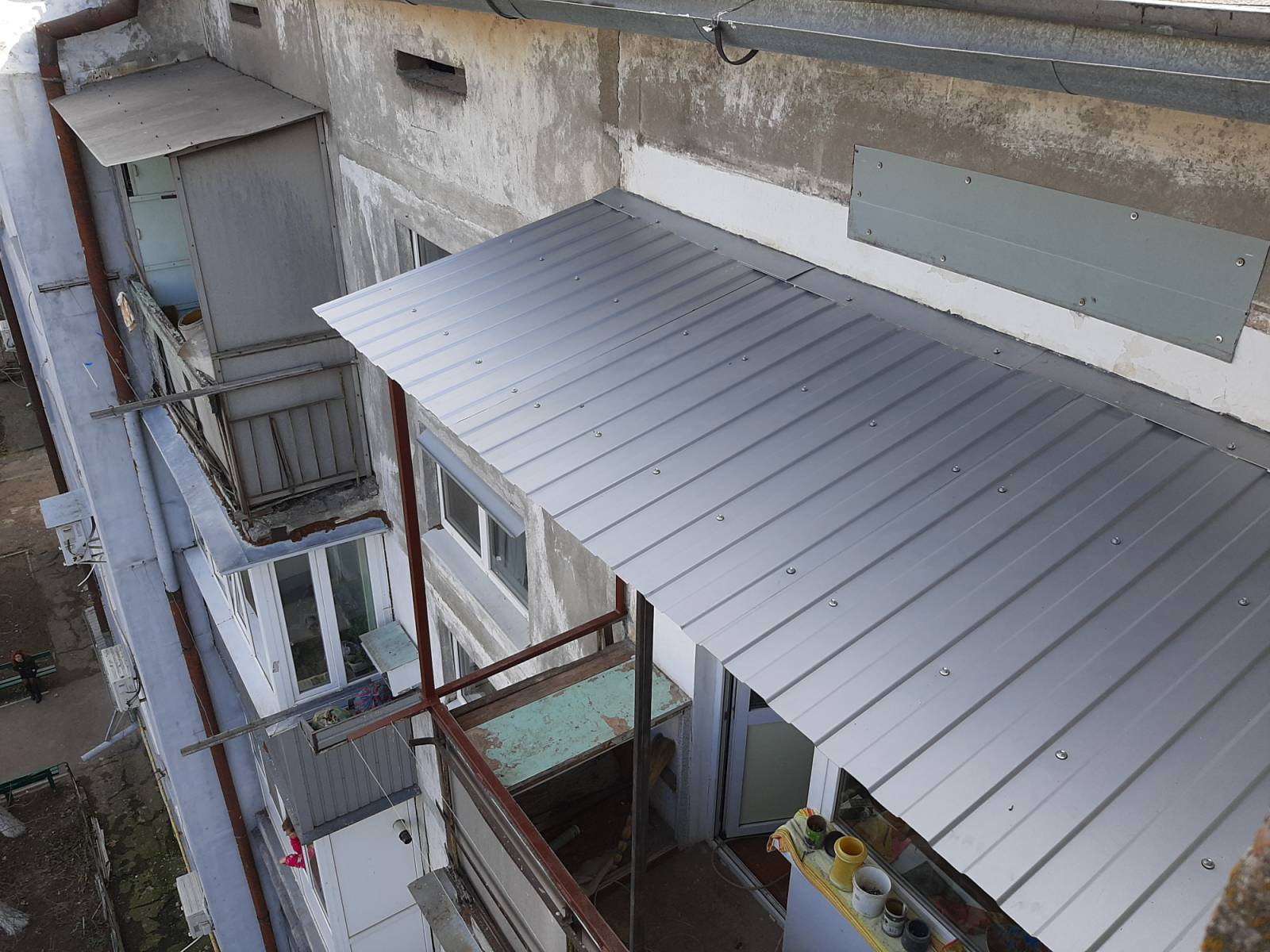 Ремонт крыши балкона на последнем этаже рекомендуем делать из профнастила - мягкая кровля недолговечна и будет требовать ремонта каждые 5 - 7 лет.